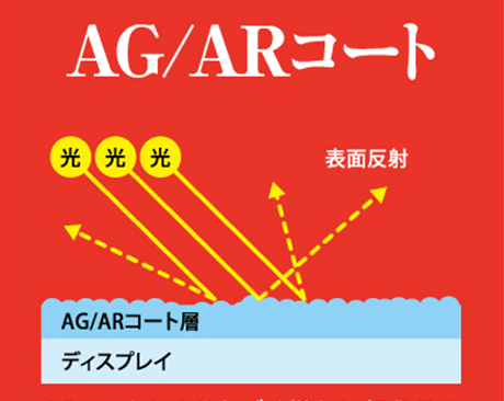 AG/ARフィルムを使用AGコートとARコートの2つのコーティング技術を組み合わせることで、さまざま光による反射やチラツキを低減。画像や文字情報をバランスよく視認できます。